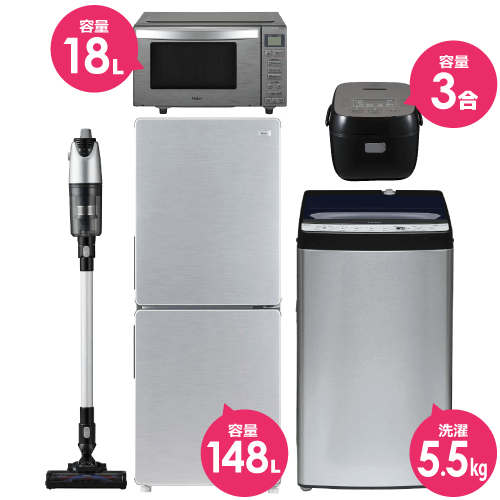 一人暮らしを始めるために欠かせない冷蔵庫や洗濯機をはじめ、必要なものがお得に揃えられるセットをご用意しました。