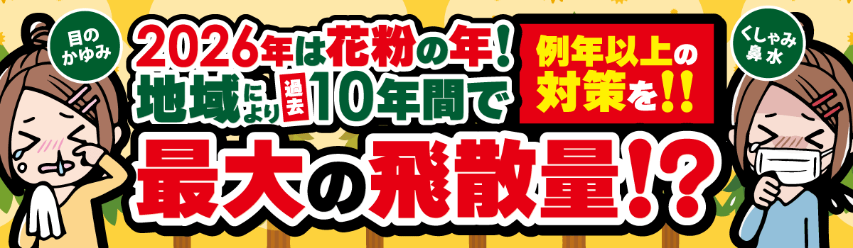 くしゃみや鼻づまり、目のかゆみや頭痛・・・毎年悩まされる花粉の症状。これらを発症してしまう方にはとてもつらい季節となります。また、花粉同様にホコリやハウスダストなどは、季節を問わず多くの人を悩ませています。花粉対策は毎日の積み重ねが大切。今からすぐに始められる対策で、少しでも辛さを軽減していきましょう。