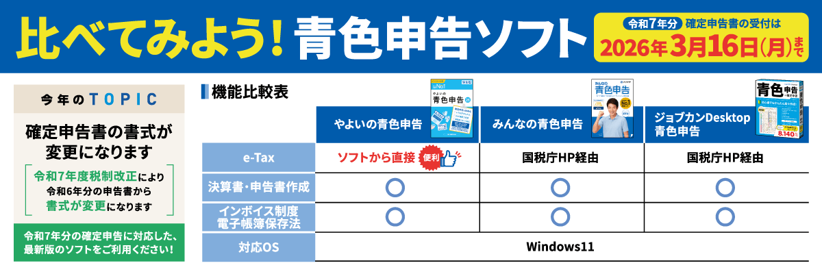 はじめてでもあんしん、やさしい青色申告ソフト(個人事業者専用)。
