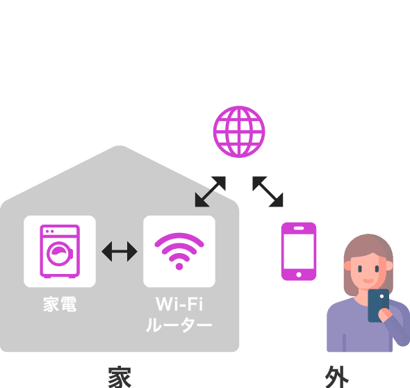 ご家庭でお使いのWi-Fiのネットワークを使って家電をインターネットに接続することができます。各家電の専用アプリをインストールして、設定を行うだけ!工事や配線は不要です。