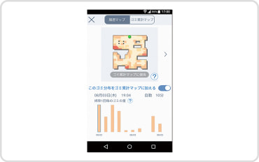 「ゴミマップ」で掃除結果のレポートを確認。ゴミのたまりやすい場所が一目で分かります。