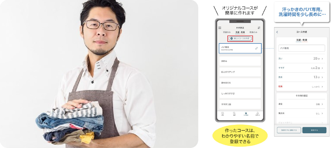 スマホで離れた場所から洗濯機を操作したり、細かな洗濯設定などができます。
