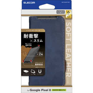 エレコム ELECOM Google Pixel 8 ケース レザー カバー 手帳型 マグネット フラップ 衝撃吸収 ワイヤレス充電可 ネイビー PM-P233PLFYNV