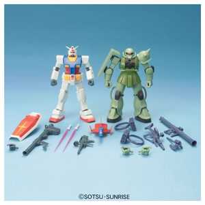 誰にでも簡単に組み立てできる!はじめようガンプラセット! HGUCのガンダムと量産型ザクIIのアニメカラーセット。
