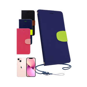 shizukawill iPhone 13 mini 2WAYストラップ付 手帳ケース 紺×黄緑 APIP13MBL