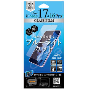 オズマ (綺麗に貼れる) (ホコリを残さない貼付けキット付)iPhone17/16Pro用ガラスフィルム ブルーライトカット クリア AFG-BLIP17