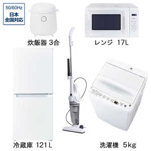 新生活家電セット 5点 ホワイト 白 冷蔵庫121L / 洗濯機5kg / 電子レンジ / 掃除機 / 炊飯器 [ 一人暮らし 家電セット ]