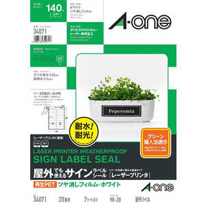 エーワン 屋外でも使えるサインラベルシール(レーザープリンタ)再生PET40% ツヤ消しフィルム・ホワイト [A4 / 7シート / 20面 / フィルム] 34071