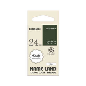カシオ CASIO ラベルライターNAME LAND用テープ 緑 [ベージュ文字 /24mm幅] XR-24KRGN