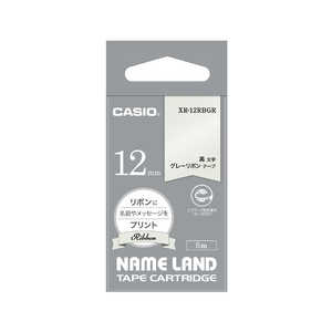 カシオ CASIO ラベルライターNAME LAND用テープ リボンテープ [黒文字 /12mm幅] グレー XR-12RBGR