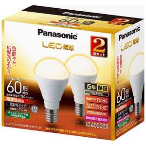 パナソニック Panasonic LED電球 小形電球形 ホワイト [E17/電球色/2個/60W相当/一般電球形] LDA7L-G-E17/K60E/S/W/2/2T