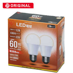 アイリスオーヤマ IRIS OHYAMA LED電球 ECOHiLUX(エコハイルクス) ホワイト E26 電球色 2個 60W相当 一般電球形 広配光 LDA8L-G-62BK