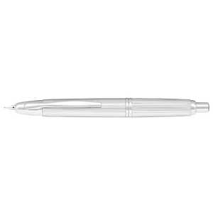 ロジウムの上質な輝きとストライプ柄が際立つノック式万年筆