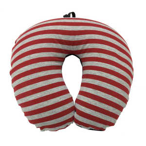 定番のボーダー柄と無地のニット生地を組み合わせたネックピロー。ビーズタイプなので膨らます必要がなく、すぐに使えます